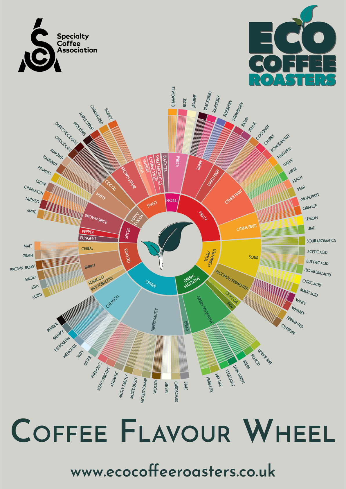 Please use this flavour wheel to help guide you through the flavour evaluations.